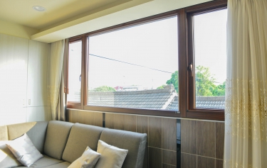 木紋色表面處理也與室內裝潢互相呼應,仿木紋程度逼真與木材無異,沒有潮濕腐朽的問題;仿木紋色也有別於一般鋁鐵色的冰冷感,整體令人覺得舒適自在,既耐用又美觀。