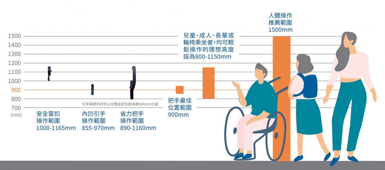 樂齡窗-年長者必備的窗戶主要用於落地門窗系統,設計重點在於優化操作時的施力模式,把手結構採用人體工學設計,弧形線條貼合手部抓握習慣,有效轉換施力角度,讓操作者能以較小的力量,輕鬆啟動和關閉較重的門扇,極大提高了門窗使用的便利性,適用於追求全齡操作簡便性的居家或公共空間。
