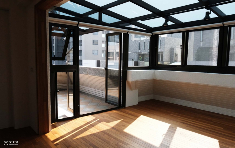 而推開窗全天候推開窗的超強載重性與五金強度,讓推開窗可以做成落地窗尺寸也不怕玻璃過重變型,適合需要隔音的客戶使用。