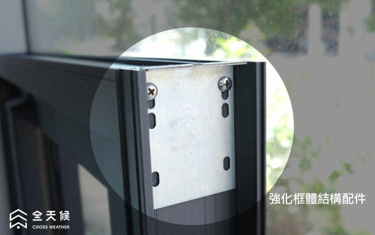 全天候氣密窗都會設計加強五金作為標淮零件,令窗戶耐用強度與壽命延長。如橫拉窗會在轉角加裝折角強化鐵片隔音設計,除了增加框體耐受強度,避免框體變形外,也能加強隔音效果;