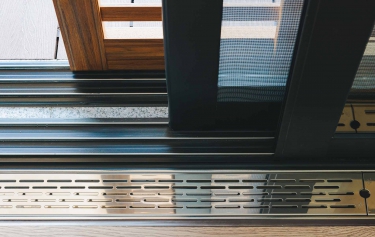 我們的專利地平五道不鏽鋼軌道設計,使用預埋式與地板等高,使用無門檻落地窗,不論是輪椅、腳踏車及汽機車都可以輕鬆通過不必擔憂。 同時可以讓五扇全收納單側,十扇收兩側,地平線一路由室內延伸到戶外,分隔室內外享受最大程度視野,因為是氣密窗的延伸兼具隔音及防塵效果,搭配特殊「快速排水系統」設計,面對強風挾暴雨依然能排除雨水不倒灌,抗氣壓設計能有效解決颱風天室內滲水之疑慮,堅固框體結構及其特殊專利五金,也能有效防止強風以及雨水侵擾。