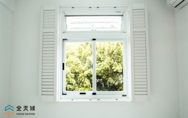 而後陽台主要需求為大面積採光和通風,採用透明與銀霞玻璃搭配,讓光線自然舒適。利用基本窗型結合上方活動百葉,因為活動百葉開關方便,使大面積採光的同時能自然通風不悶熱。