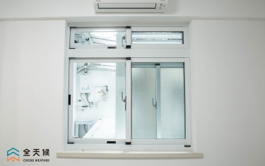 全天候在窗戶規劃上,前陽台室內落地窗+室外橫拉窗搭配8mm玻璃,利用兩層窗戶達到隔絕效果。大面積設計結構強度也足夠,在颱風大雨來臨時客戶不需擔心。