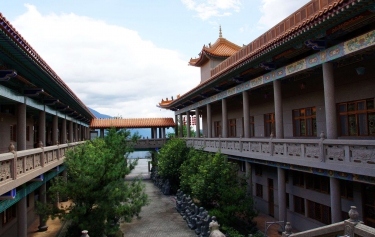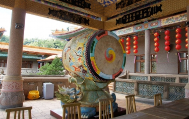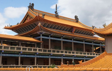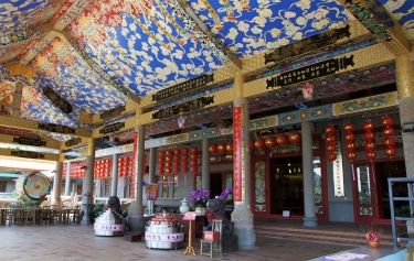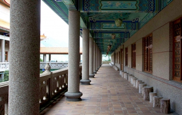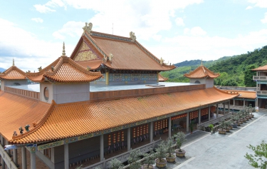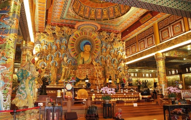 大殿內的佛像是請韓國的雕刻師來刻的,正殿前為接引拜亭,象徵諸佛接引有緣眾生。而臥佛殿則擁有東南亞最大的樟木雕刻臥佛像,莊嚴慈祥,並以佛入涅槃的浮雕壁畫圖為背景。