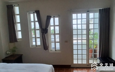 位在台南的民宿,為了整體美觀與防盜需求,選用全天候格子橫拉窗。 複層玻璃中空層為防盜穿梭管,不怕宵小打破玻璃直接進入。 而且複層玻璃在節能效果佳,隔音效果加倍,使旅客可以好好休息。
