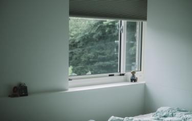 本來只是想隔絕風的,現在卻想讓她知道微風吹來,頭髮⾶動的舒爽。⼩實會盯著風吹動的旋轉掛飾看,好的窗讓⼈享受到風吹的溫柔。
