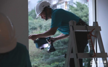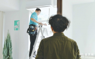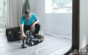 施⼯當天,家裡竟成了最美⼯地。地板雙層防護是帆布+養⽣膠帶,包得滴⽔不漏,千⽄重的窗框擺著,也都會⽤軟墊防護,對於既有家具的移動也都非常⼩⼼,事後也復原的⼀乾⼆淨~